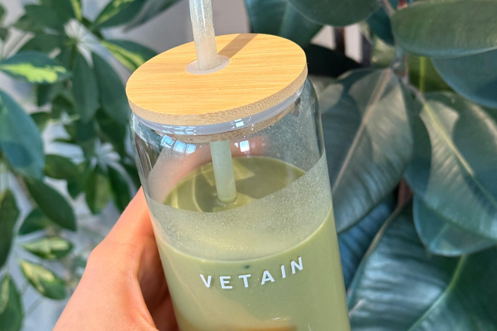 Vetains Trinkglas ist perfekt geeignet für Smoothies, Shakes, Iced-Coffee & Matcha, Overnight Oats, Joghurt und zum Fermentieren