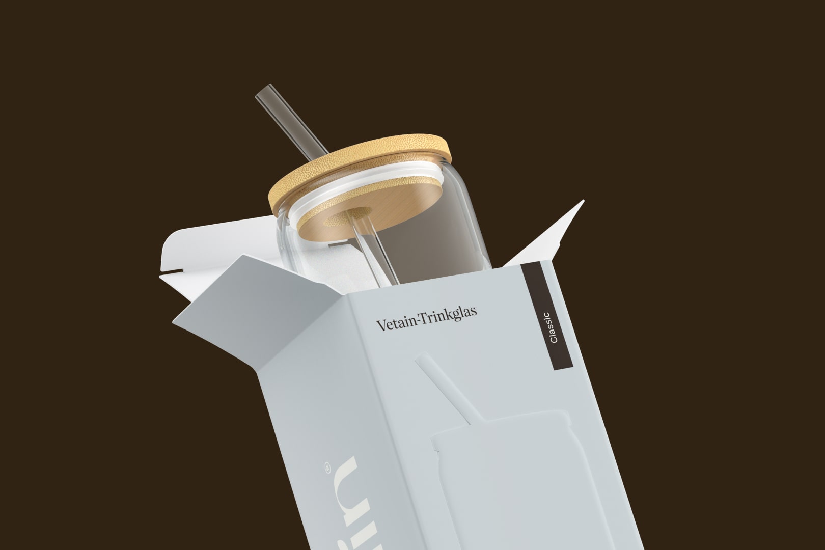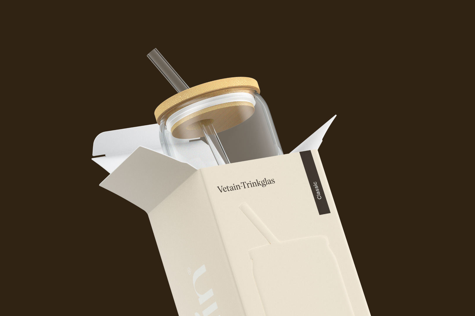 Vetains Trinkglas ist vielseitig einsetzbar. Es ist leicht zu reinigen, ein Klassiker mit neuem Logo, auch zum Mitnehmen geeignet, inklusive Glasstrohhalm & Reinigungsbürste