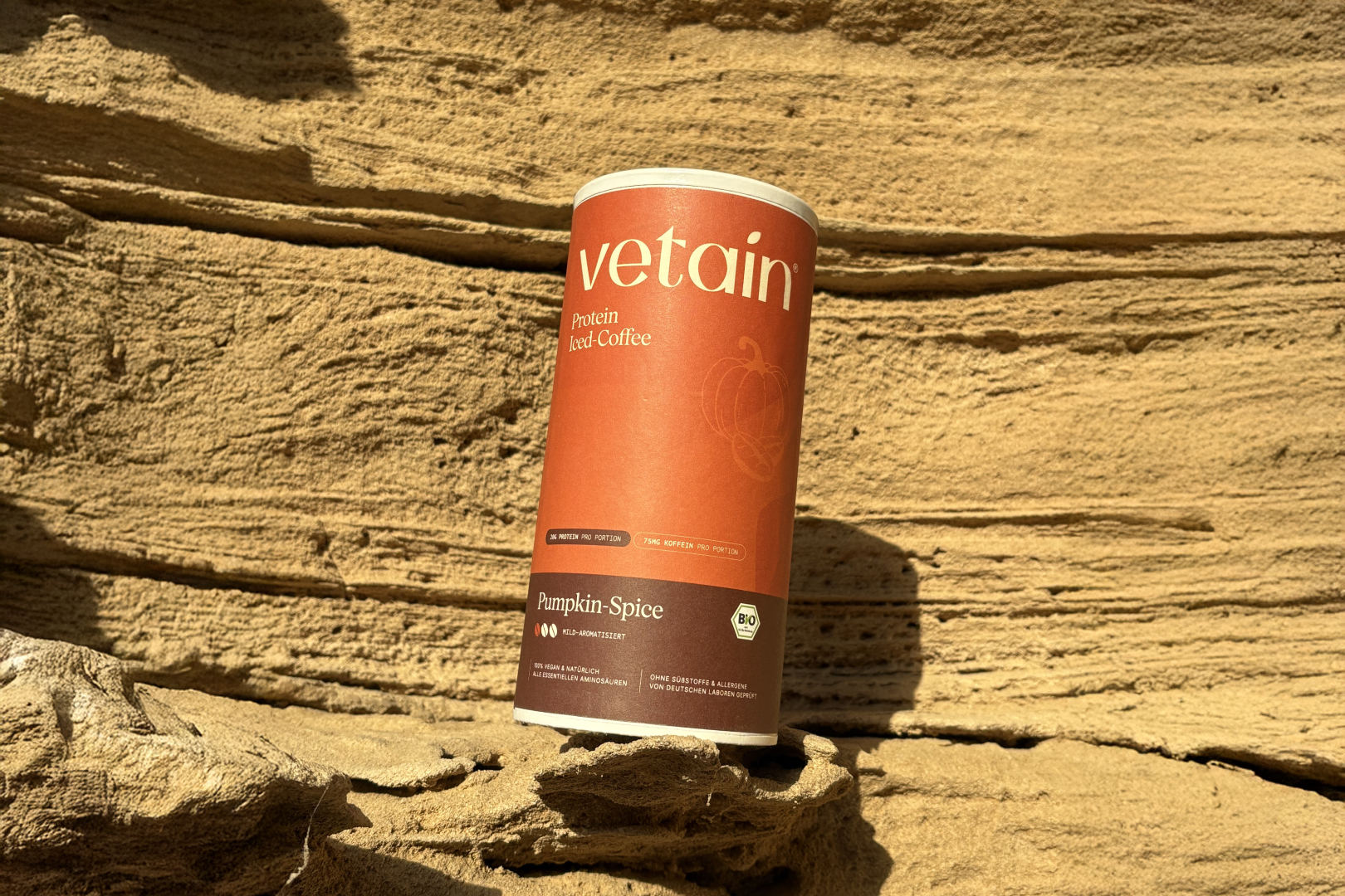 Vetain vegan Protein Iced-Coffee Pumkin-Spice. Mit fünf pflanzlichen Proteinkomponenten